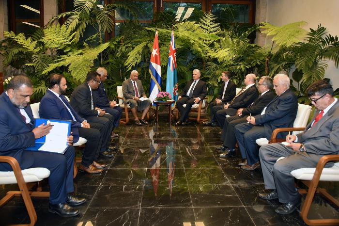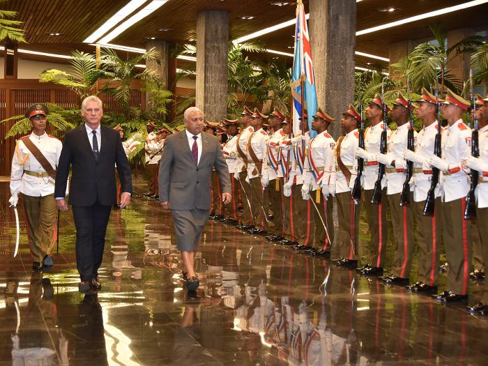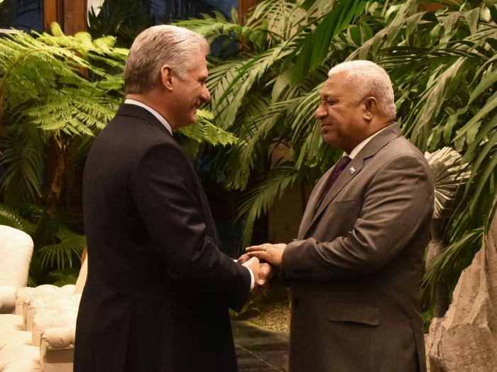 El Presidente de los Consejos de Estado y de Ministros, Miguel Díaz-Canel Bermúdez, recibió este miércoles al Honorable Josaia Voreque Bainimarama, Primer Ministro de la República de Fiji, quien realiza una visita oficial a nuestro país.