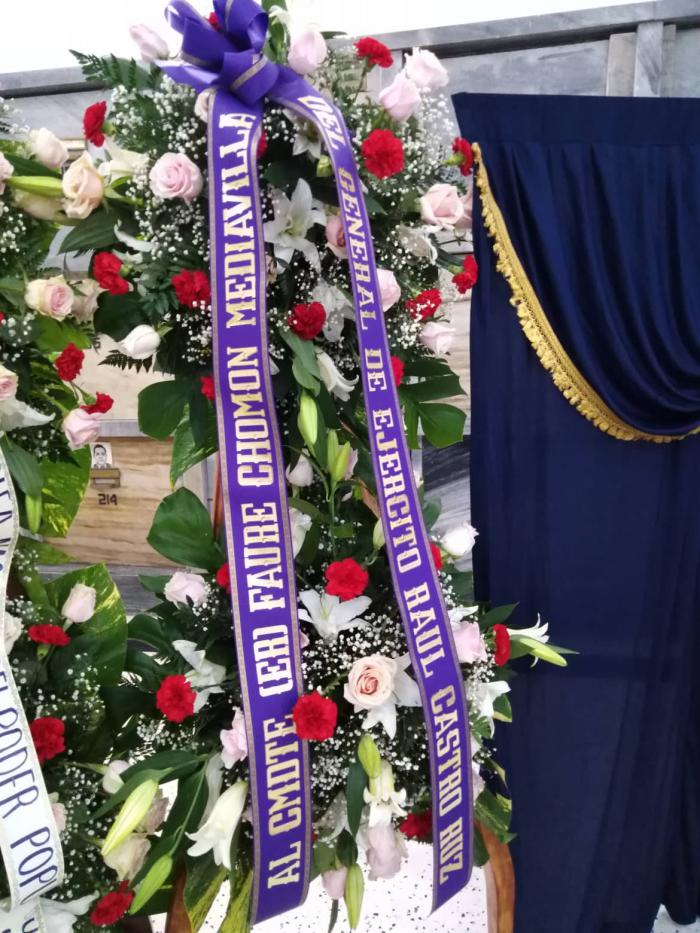 Se puede apreciar en la sala de Honor, junto a las cenizas del revolucionario, las ofrendas florales de Raúl, Miguel Díaz-Canel Bermúdez, Presidente de la República, así como del Comité Central del Partido, de la ANPP, del Ministerio de las Fuerzas Armadas y la Asociación de Combatientes.