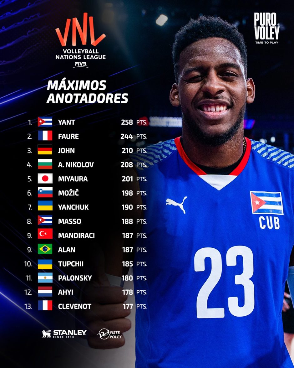 En la 7ma Liga de Naciones de Voleibol (LNV) ganada por Polonia, Yant, de 24 años de edad, fue el principal baluarte en la séptima plaza alcanzada por Cuba, al liderar a los máximos anotadores del certamen con 254 puntos y los atacantes (219), mientras culminaba onceno entre los bloqueadores (23 unidades).