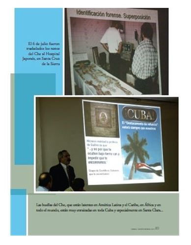 Debemos destacar que en esta labor de investigación, búsqueda, hallazgo e identificación de los restos del Che y sus compañeros de lucha participaron 71 científicos y especialistas cubanos, de los cuales 15 trabajaron, en diferentes momentos, en Bolivia, en incansable labor, ampliando y profundizando la investigación histórica, así como utilizando y aplicando con iniciativas diversos medios tecnológicos modernos y otros creados con ese fin.