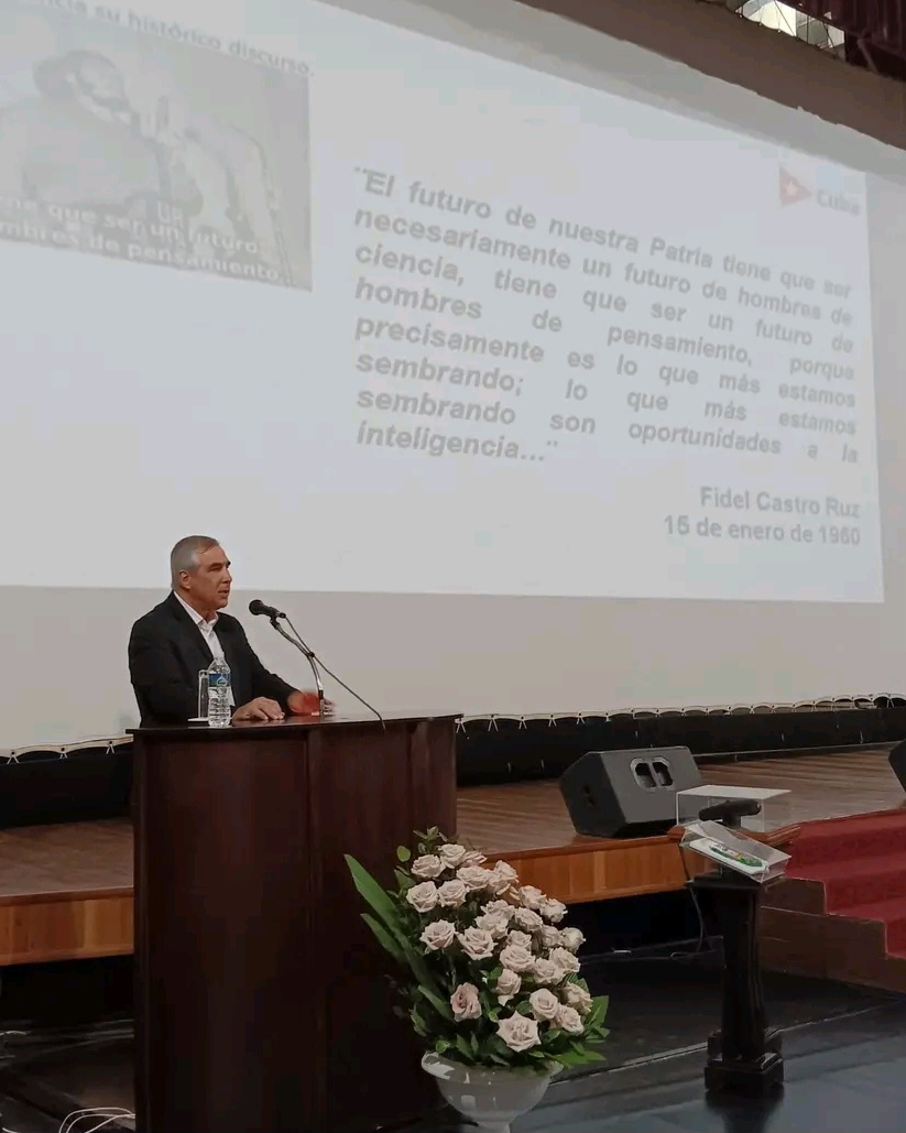 Como parte del acto de apertura, el vice primer ministro Dr. C. Martínez Díaz ofreció una conferencia sobre el estado del desarrollo científico en Cuba. En su exposición destacó los principales resultados investigativos del país en importantes sectores como la salud pública, los cuales ubican a la mayor de las Antillas en un lugar cimero.