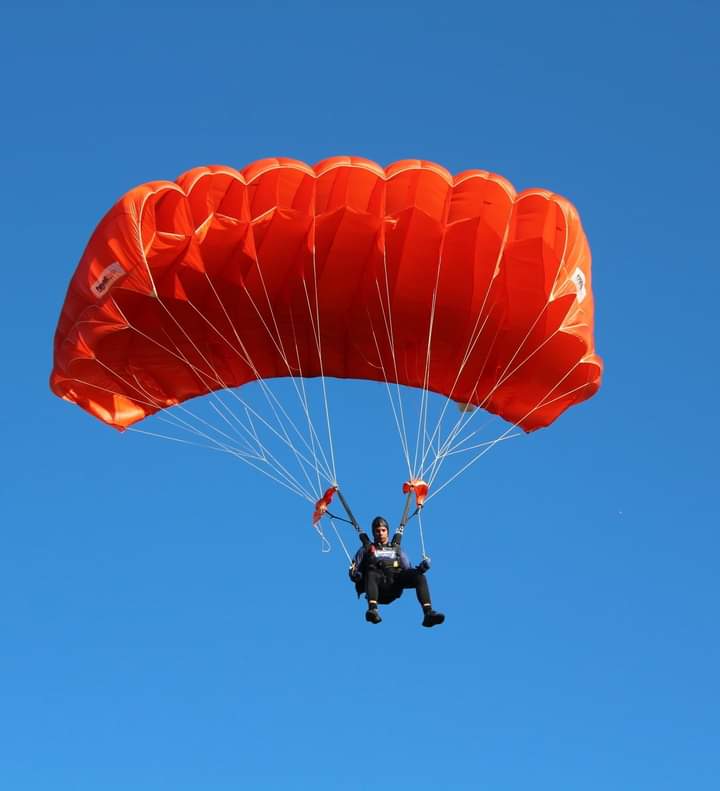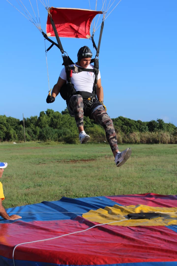 «Luego de muchas carreras comencé a saltar. En medio del período especial logramos hacer un club para Villa Clara. Tenía 17 años, pero fui el loco que potenció todo aquello», detalla el paracaidista que sobrevoló, en septiembre de 2021, la Plaza Ernesto Che Guevara, con la insignia nacional colgando en el arnés.