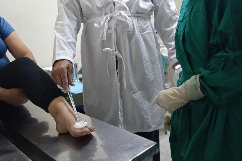 Desde el policlínico Chiqui Gómez, la Dra. Margot González Llerena, especialista en Medicina General Integral y responsable del ensayo clínico en esa área de salud, detalla que la identificación de los pacientes con posibilidades de incluirse en el estudio comienza desde los consultorios médicos. Se les pide acudir a la sala de rehabilitación del policlínico —cualquier día de la semana— para una valoración por parte de los podólogos, y se les pregunta si están dispuestos a participar en el ensayo clínico.